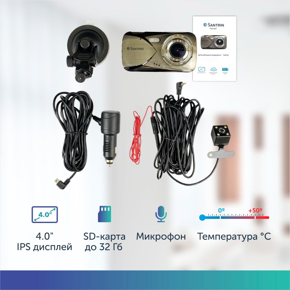 Видеорегистратор автомобильный с камерой заднего вида, регистратор на авто 2 в 1, 2 Mpix FullHD 1080P.
