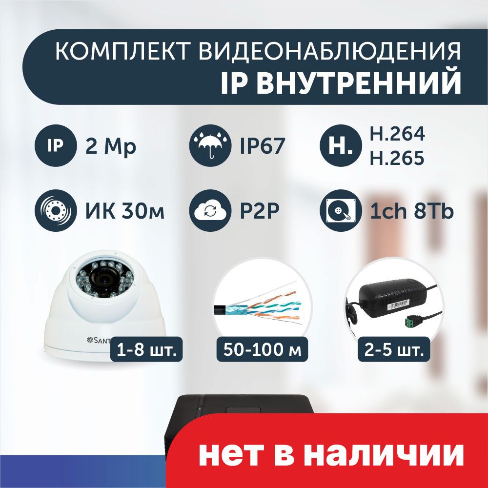 Внутренние 2 Mpix купольные IP камеры 1-8 шт;